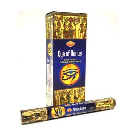 L'encens « Œil d'Horus » (souvent de la marque HEM) est un puissant purificateur spirituel, réputé pour protéger contre le mauvais œil et les énergies négatives. Avec ses notes boisées et musquées, il favorise la méditation, la paix intérieure, la guérison et éveille la spiritualité en stimulant le « troisième œil