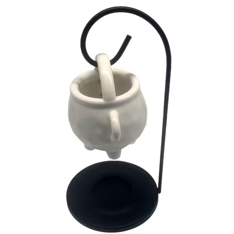 Porte-encens en céramique avec support - Design élégant blanc et noir gothique/sorcellerie, compatible avec bougies chauffe-plat et cires fondantes, base noire robuste et brûleur rond stable pour décoration intérieure, méditation, yoga ou rituels de sorcellerie - Diffuseur décoratif et fonctionnel