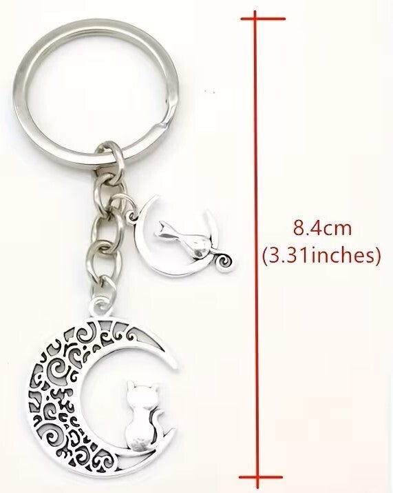 Porte-clés pendentif chat lune argenté vintage charmant, pendentifs élégants pour femmes et hommes, porte-clés chat lune pour clés de voiture.